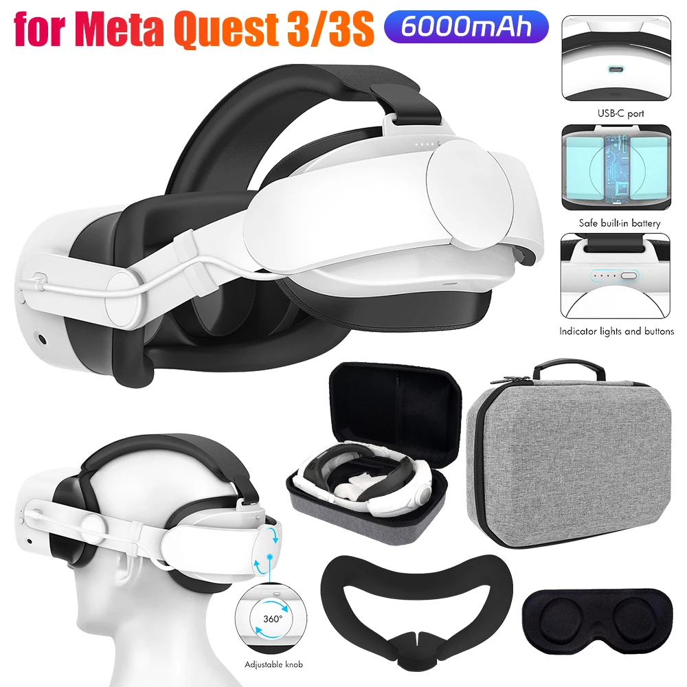 1. Built-in 6000mAh Battery: The head strap is compatible with Meta Quest 3S/