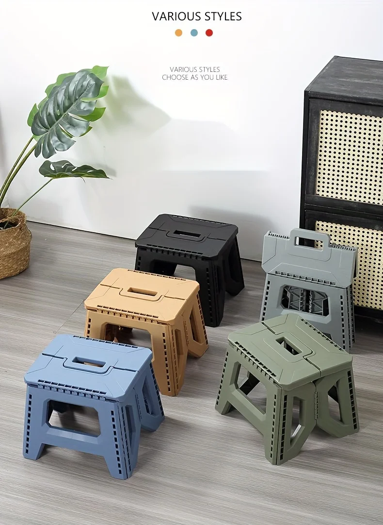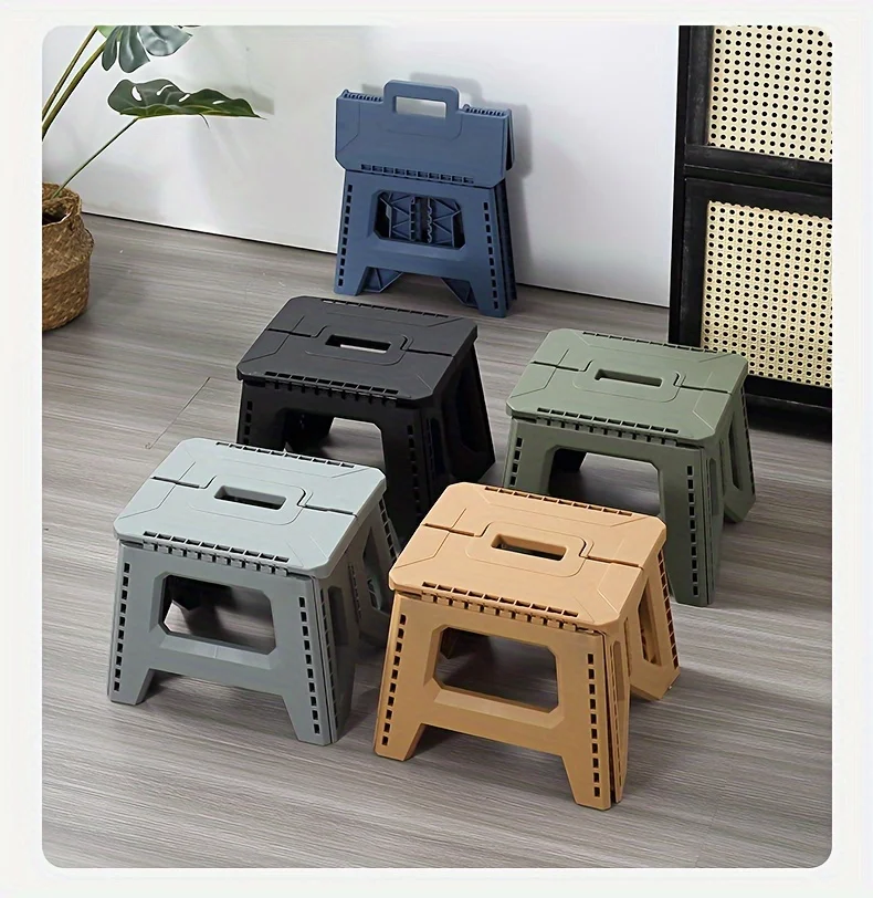 Heavy-Duty Thickened Portable Folding Stool with Handle - 1 Pack Square Plastic Collapsible Stool for Indoor, Gatherings, Picnic