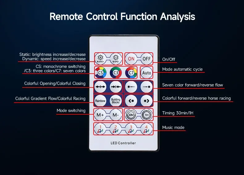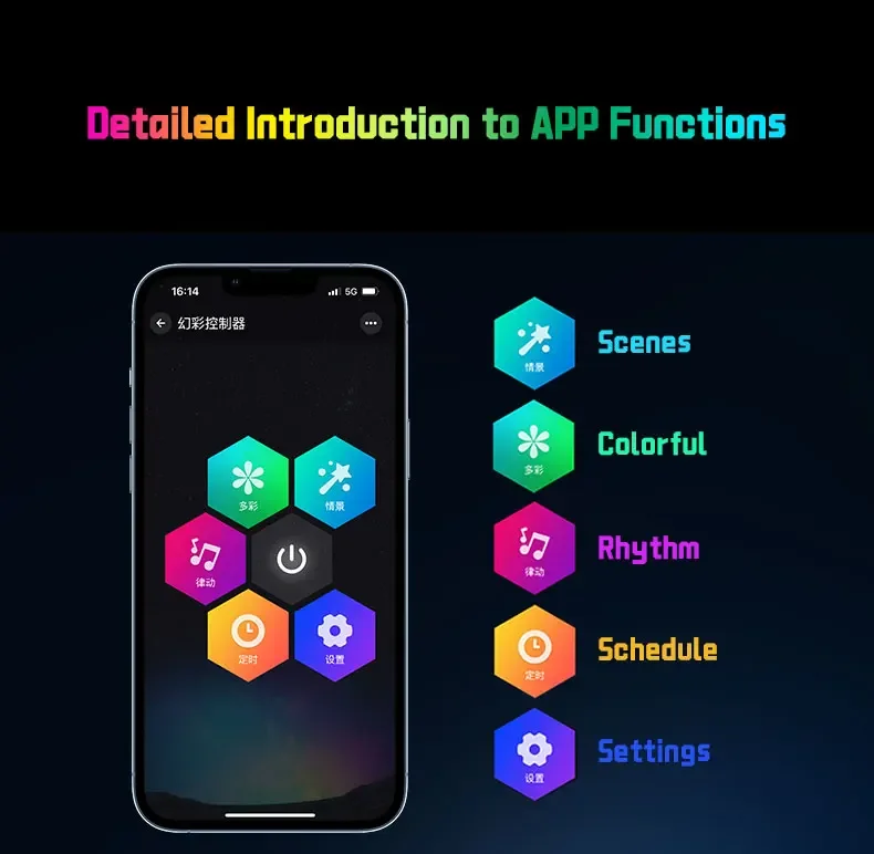 5. Strong Timing function: Set the lights on and off according to the time you set. You can freely choose different lighting effects