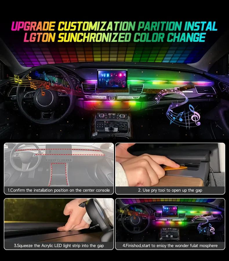 2. 30 Seconds module helps you turn off the lights to alleviate your distress. With human body sensor. Small in size. It doesn't take up space and is very easy to hide.sensing at a distance of about 1 meter.when you approach the module the light will come on . After you leave 1 meter away for 30/60 seconds, the light strip will automatically turn off, making it very suitable for use with car atmosphere lights. The USB Expansion dock helps you add multiple items to create a better atmosphere in your car. Can be used by multiple devices simultaneously. It can easily achieve various functions such as entertainment, atmosphere lights, driving records, charging, etc.Easy to install, plug and play!