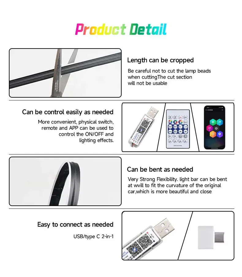 1. Our Symphony & RGB strip can be bent and cut. You can put it everywhere.