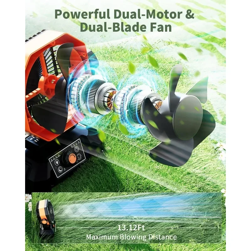 ๐——๐˜‚๐—ฎ๐—น ๐— ๐—ผ๐˜๐—ผ๐—ฟ ๐——๐—ฟ๐—ถ๐˜ƒ๐—ฒ & ๐Ÿด-๐—ฆ๐—ฝ๐—ฒ๐—ฒ๐—ฑ ๐—ช๐—ถ๐—ป๐—ฑ: coldSky camping fan has built-in powerful dual motors and double-layer fan blades, offers 8 adjustable wind speeds. This advanced tech helps the turbo to drive more air in a faster way, Wind power is twice that of traditional outdoor fans. It can reach a blowing distance of up to 13.12Ft, Makes you feel cool quickly, perfect for outdoor use in hot summer, as well as for use as a jobsite fan, industrial fans and ventilador fan