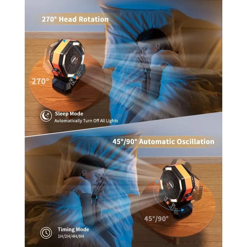 ๐—”๐˜‚๐˜๐—ผ ๐—ข๐˜€๐—ฐ๐—ถ๐—น๐—น๐—ฎ๐˜๐—ถ๐—ผ๐—ป ๐—ฎ๐—ป๐—ฑ ๐Ÿฎ๐Ÿณ๐Ÿฌ-๐——๐—ฒ๐—ด๐—ฟ๐—ฒ๐—ฒ ๐—ฅ๐—ผ๐˜๐—ฎ๐˜๐—ถ๐—ผ๐—ป:The travel fan for sleeping Featuring auto-oscillation with 45ยฐ and 90ยฐ angle options. Fan's head can also rotate 270 degrees up and down. Easily adjust the fan to the optimal blowing angle, especially useful during sleep