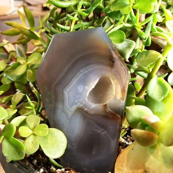 Agates carry a quiet energy that works on the subtle bodies, and are great for achieving stability and balance in many aspects of one’s life. Agates tend to work behind the scenes on the cause, instead of the symptom, of an issue.Agate is believed to improve mental functions and can help where issues of clarity and stability are concerned. Agate is also helpful in overcoming negative emotions by bringing love into the Chakras.