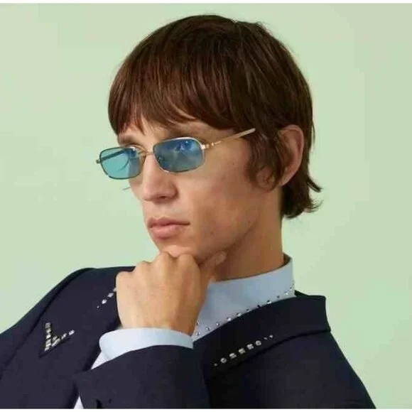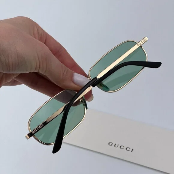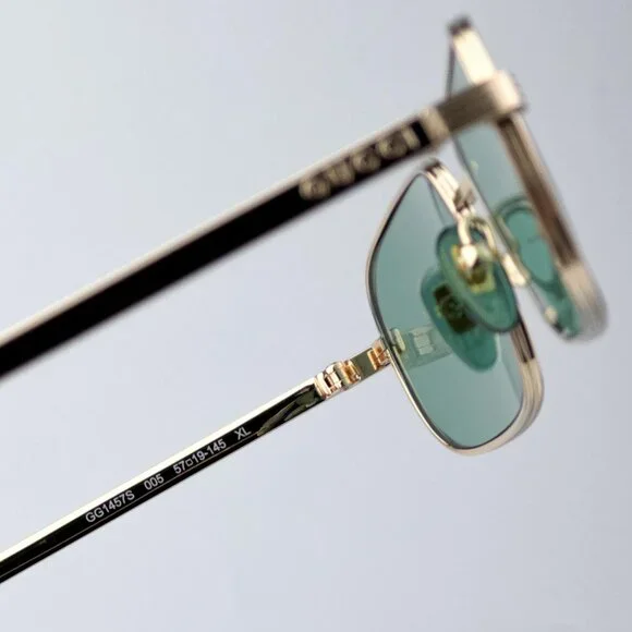 Gucci GG1457S 005 Men BRAND NEW Sunglasses Gold Green Rectangle