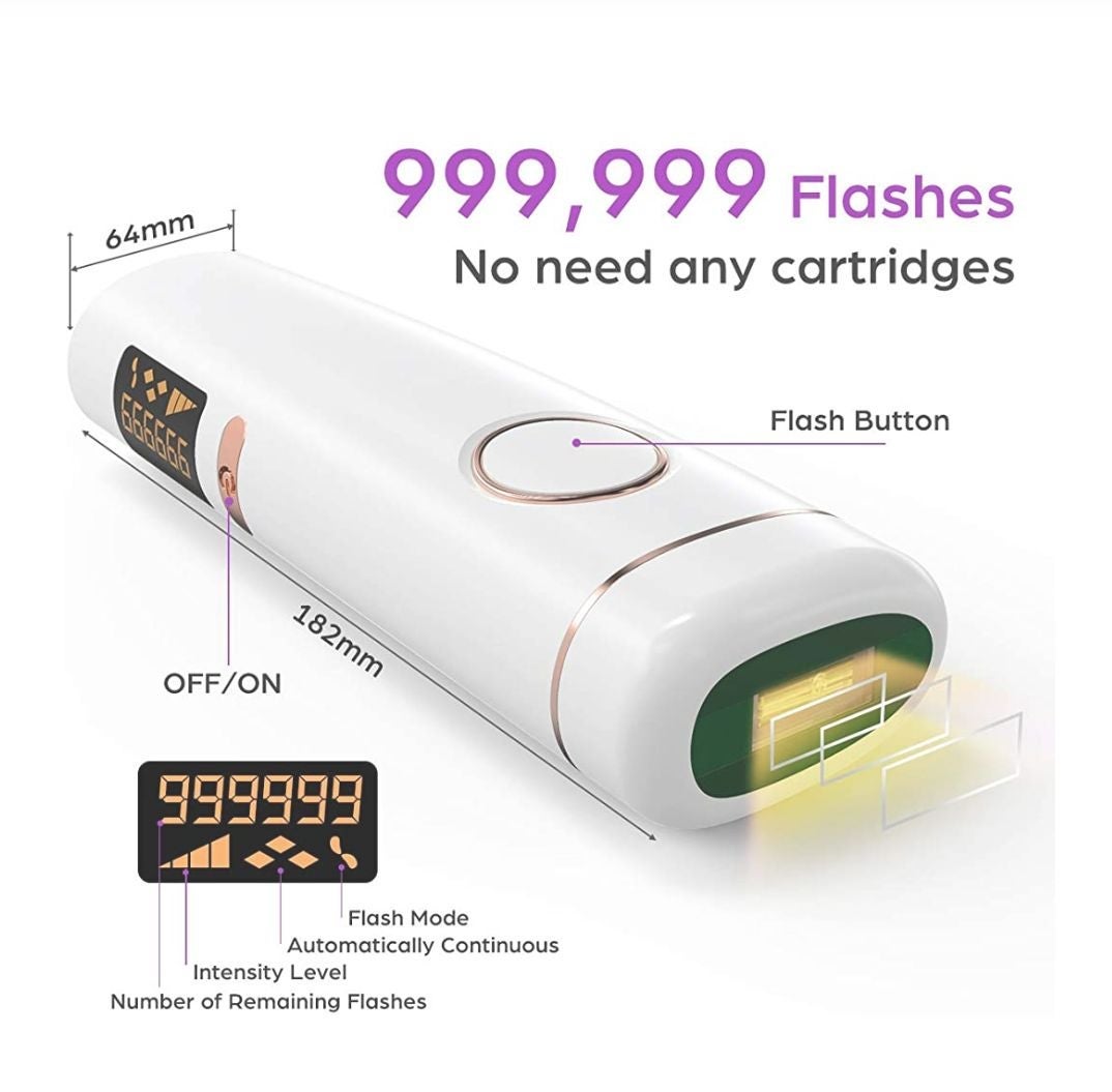 【Unique design & 999,999 Flashes】 The IPL hair removal is designed with hand-polished jadeite, which can cool down and protect your skin. In order to get an excellent lifelong use, Blusmart IPL hair removal can emit to 999,999 light pulses, which meet your removal experience.