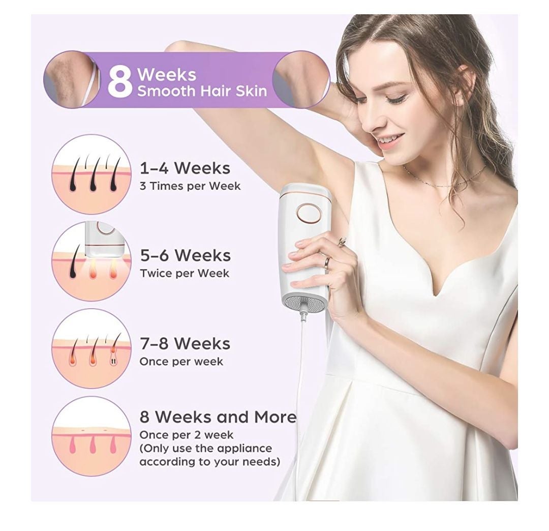 【Painless Permanent Hair Removal】 The IPL Hair Removal deactivates hair follicles and reduces hair growth for permanent hairless results. This IPL Hair Removal device is also completely safe and painless, suitable for sensitive area, such as face and bikini line.