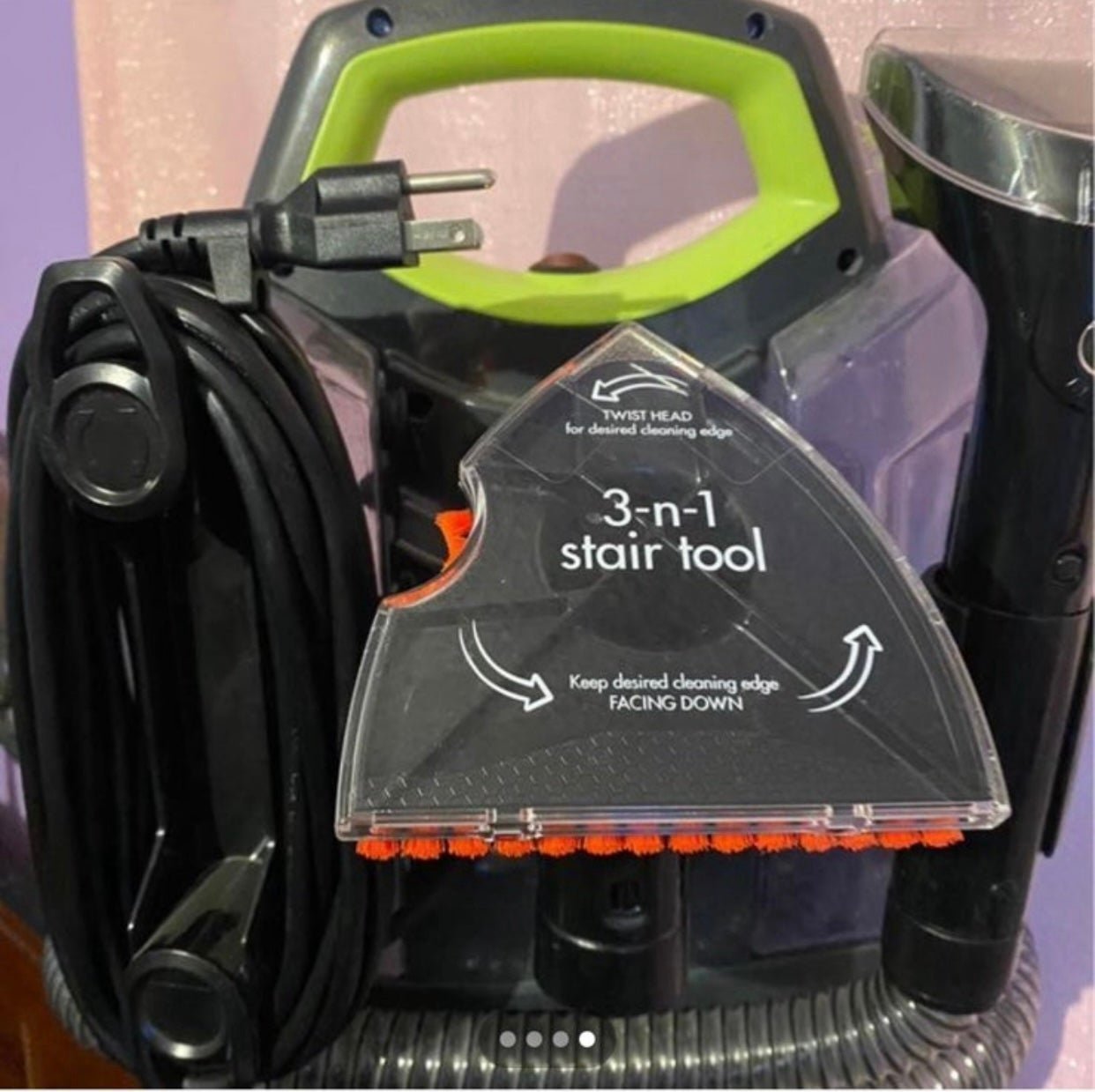 3-In-1 Stair Tool Cleans Outer Curves, Corners & Treads of Carpeted Stairs