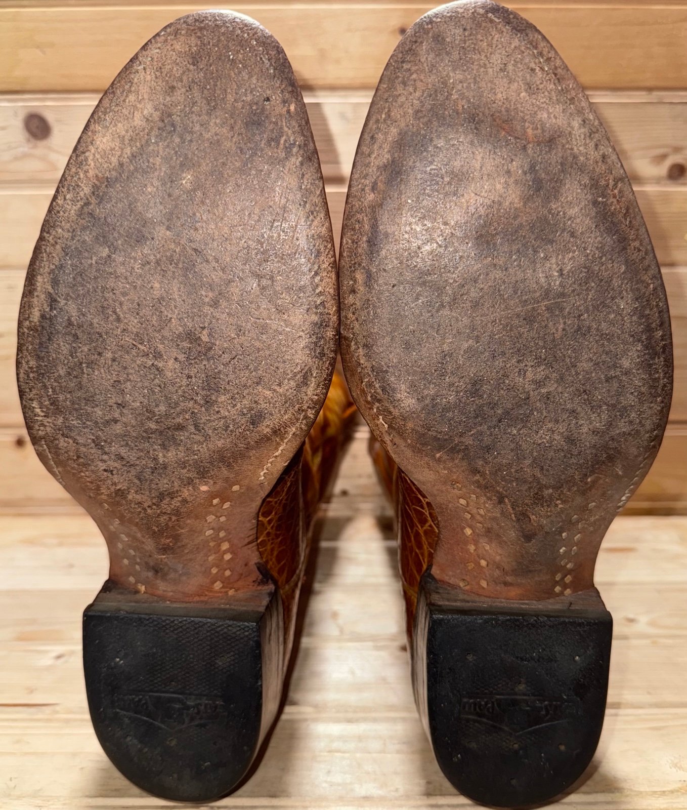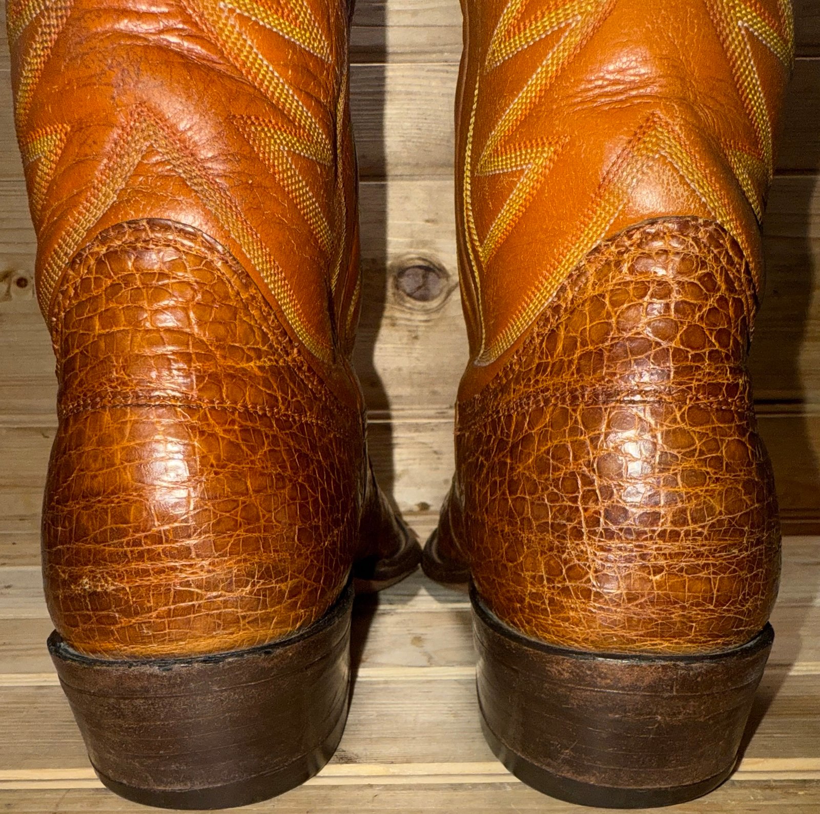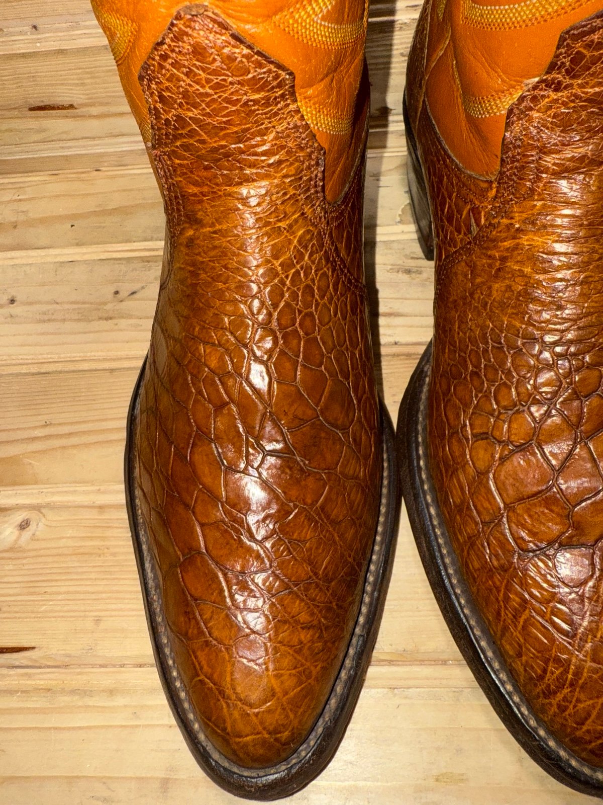 Step into a unique style with these Nocona cowboy boots. Featuring a sea turtle exotic design, these boots are sure to turn heads. The cognac color adds a touch of sophistication, while the leather upper material ensures durability and comfort. With a size of 9.5D, these boots are perfect for men who want a stylish and comfortable shoe option.