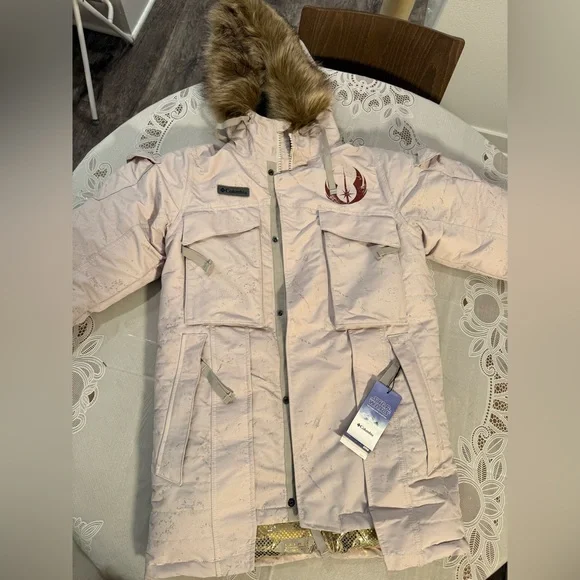 Brand new with tags, never usedTHE JEDI™ WAYSeize the high ground this winter with a special-edition hooded parka built to keep you warm in frigid conditions and crafted for Star Wars: The Clone Wars™ fans and outdoor enthusiasts alike.MASTER THE ELEMENTSInspired by Obi-Wan Kenobi™ and his adventures on the ice planet Orto Plutonia™, the waterproof-breathable shell keeps you dry and protected while 650-fill insulation and advanced thermal-reflective lining team up against the cold.FOR THE REPUBLICFan-favorite details include Jedi and Republic insignia along with an internal “blood chit” label coded in Aurebesh™, the universal written language of the Star Wars galaxy. Additional features include security, hand, chest, and cargo pockets along with comfort cuffs and an adjustable hood (with removable faux fur) and hem.